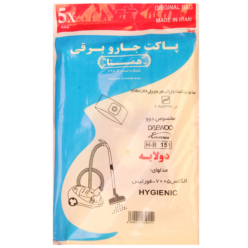 پاکت جاروبرقی همتا کد H-PA 159 مناسب برای جاروبرقی پاسا بسته پنج عددی