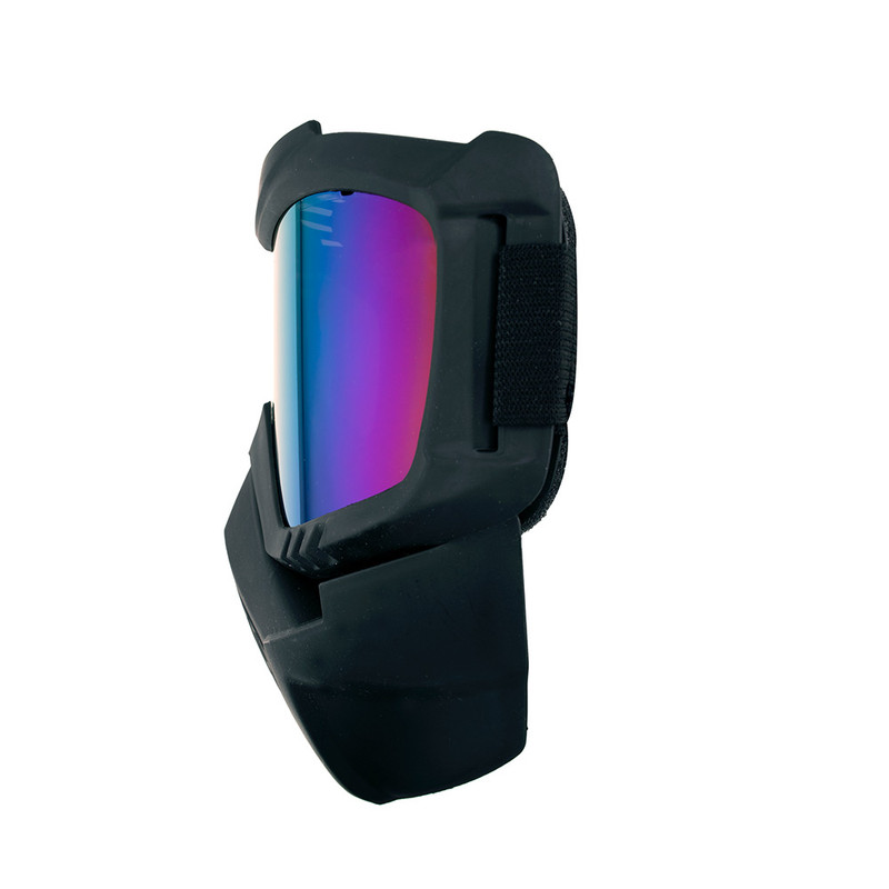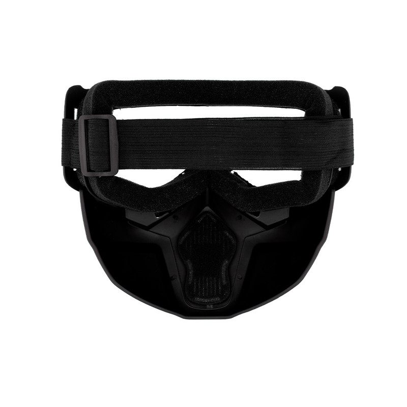 عینک موتور سواری مناسب برای موتورسواری، اسکی و اسکیت است. شیشه این عینک ، از خستگی چشم در پیست اسکی و کوهستان های برفی جلوگیری میکند.این عینک دارای ماسک فیلتر دار و قابلیت دو تکه شدن است که میتوان از آن به صورت عینک یا عینک و فک استفاده کرد. مناسب برای تمام فصول و محیط ها میباشد.کناره های داخل ماسک عینک از اسفنج نرم پوشیده شده که مانع از فشار به اطراف چشم میشود. همچنین، میتوان آن را همراه با کلاه کاسکت های موتورسیکلت بدون فک و بدون شیشه به راحتی استفاده کرد.