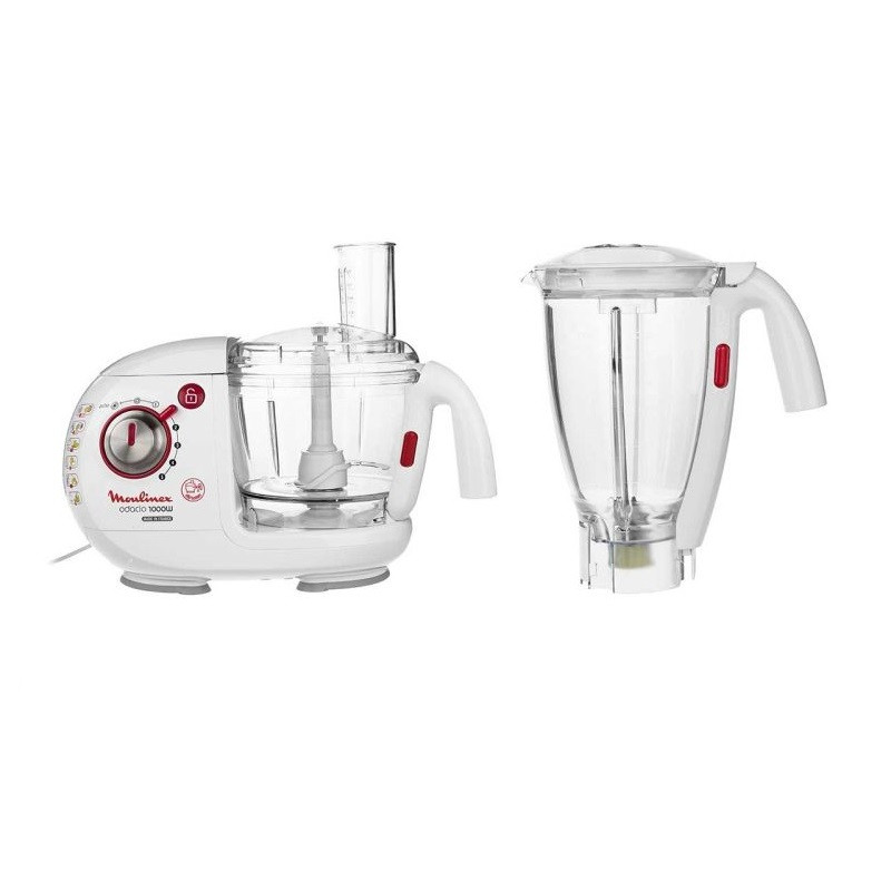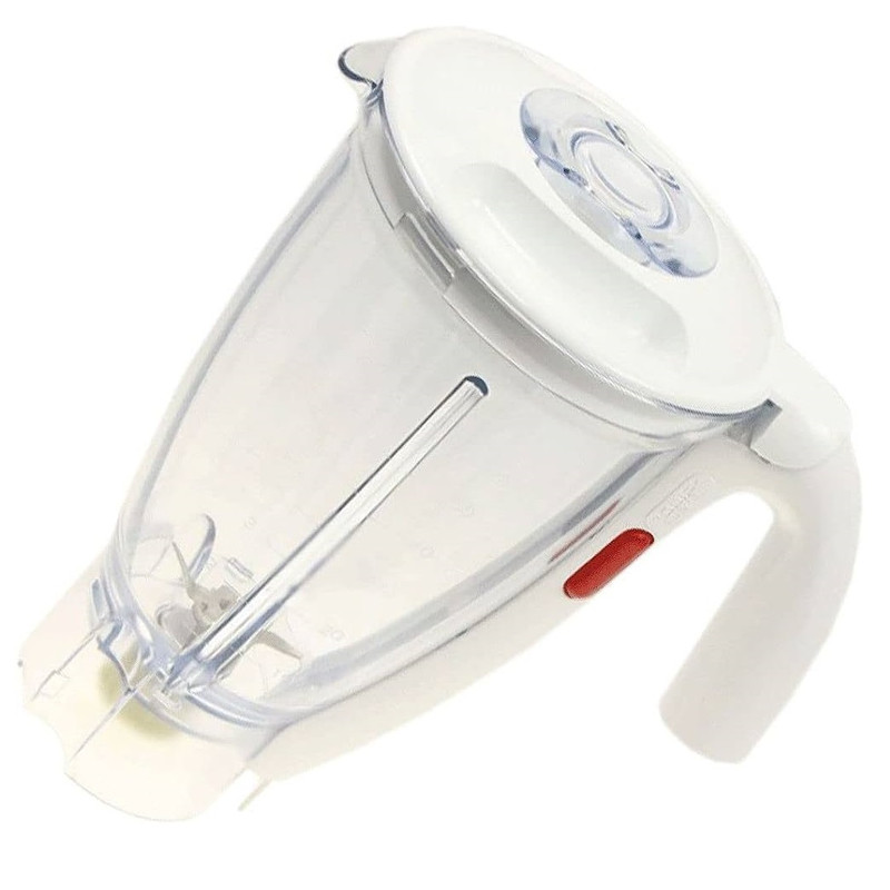 این مدل پارچ غذاساز مولینکس در مدل های قدیمی با دکمه طوسی عرضه گردیده است و چون سرس جدید غذاساز های مولینکس ترکیب سفید و قرمز است دکمه به کار رفته در این پارچ غذاساز مولینکس به رنگ قرمز عرضه می گردد.