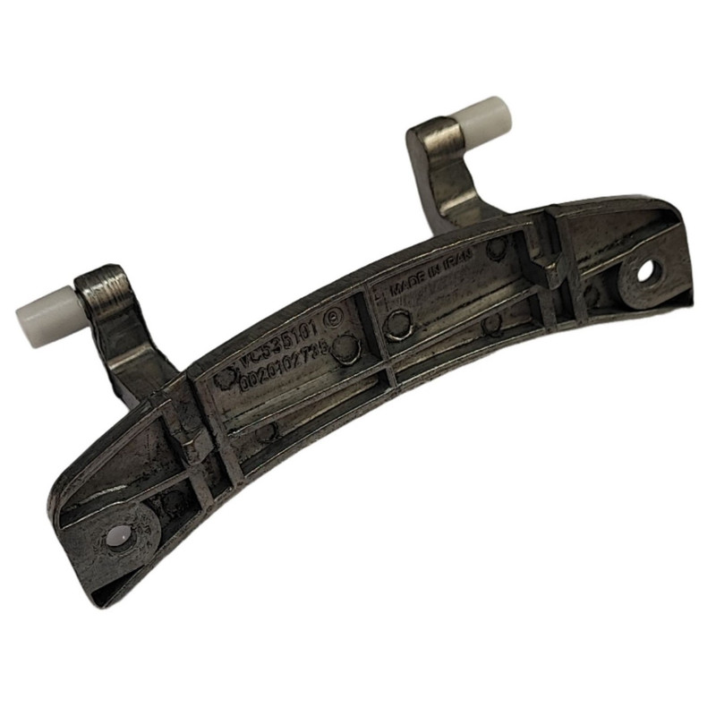 سایر توضیحات : این نوع لولای درب ماشین لباسشویی متناسب با ابعاد و مشخصات فنی ماشین لباسشویی حایر و اسنوا مدل 601 ساخته و تولید شده است. فاصله بین دو جای پیچ روی بدنه لباسشویی 117mm و فاصله دو گوشواره از هم 106mm میباشد.
