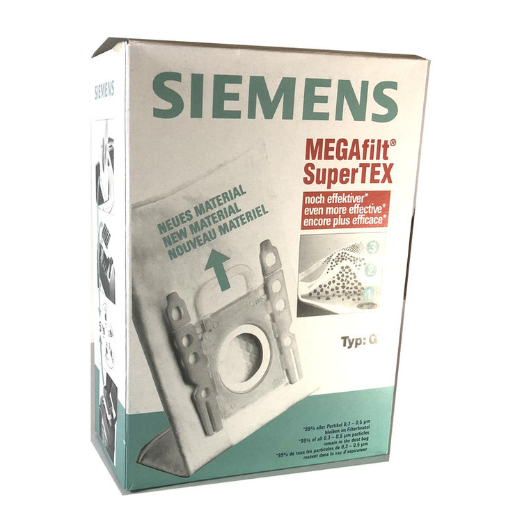 کیسههای جاروبرقی نوع «MEGAfilt superTEX » نوع G مناسب برای جاروبرقی های بوش و زیمنس سازگار با این سری از جاروبرقی ها می باشد. این کیسه جاروبرقی علاوه بر اینکه از مواد با کیفیتی در تولید خود بهره میبرد، دارای درب بهداشتی و فیلتراسیون با قابلیت جذب 99% گرد و غبار می باشد. در بستهبندی این محصول پنج کیسه جاروبرقی از نوع G عرضه شده است و میتواند برای جاروبرقیهایی که با این نوع یا سایز کیسه سازگاری دارند مورد استفاده قرار گیرد. این کیسه ها جزو محصولات پریمیوم ساخت چین می باشد