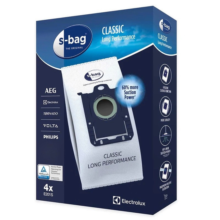 پاکت جاروبرقی مدل E201S بسته 4 عددی مناسب برای جاروبرقی های الکترولوکس و آاگ و فیلیپس