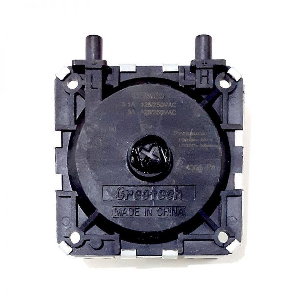 جهت تشخیص عملکرد صحیح فن پکیج یک کلید ایمنی دود(پرشر فشارهوای پکیج)، که از یک دیافراگم و میکروسوئیچ تشکیل شده استفاده می شود. این کلید در داخل محفظه احتراق بسته قرار گرفته و هنگامی که فن شروع به کار می کند، فشار یک سمت دیافراگم کاهش یافته و میکروسوئیچ فعال می شود و یک جریان الکتریکی به برد ارسال شده و برد متوجه عملکرد صحیح فن می گردد. در صورت ایجاد مشکل در مسیر خروج دود یا خرابی فن پکیج، میکروسوئیچ غیرفعال گشته و برد جریان گاز را قطع می نماید. فشار عملکرد این کلیدها روی پرشر دود درج شده است و ممکن است در پکیج با ظرفیت های مختلف ، متفاوت باشد. پرشر هوا یک کلید نرمالی اوپن (NO) است که در حالت عادی کنتاکت آن باز می باشد. اگر قبل از روشن شدن فن این کلید وصل شود پکیج روشن نمی شود. بر روی برخی از پرشرها 3 پایه قرار گرفته و شماره هر پایه در کنار آن درج شده است. پایه های 1 و 3 نرمالی اوپن بوده و کابل برد باید به پایه های 1 و 3 متصل گردند.